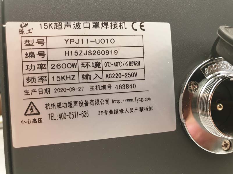 | 제 품 명 : 15kHz 2600W 고출력 초음파 융착기 ZJS-2000 Series 모델번호 : YPJ11-U010-A |